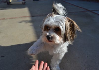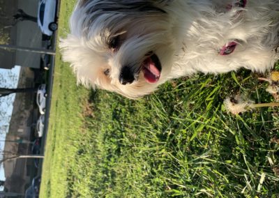 This is bella, she is a Maltese and Yorkie mix. She is 2 years old and loves going on long walks to the park, play ball, and meeting other doggos.